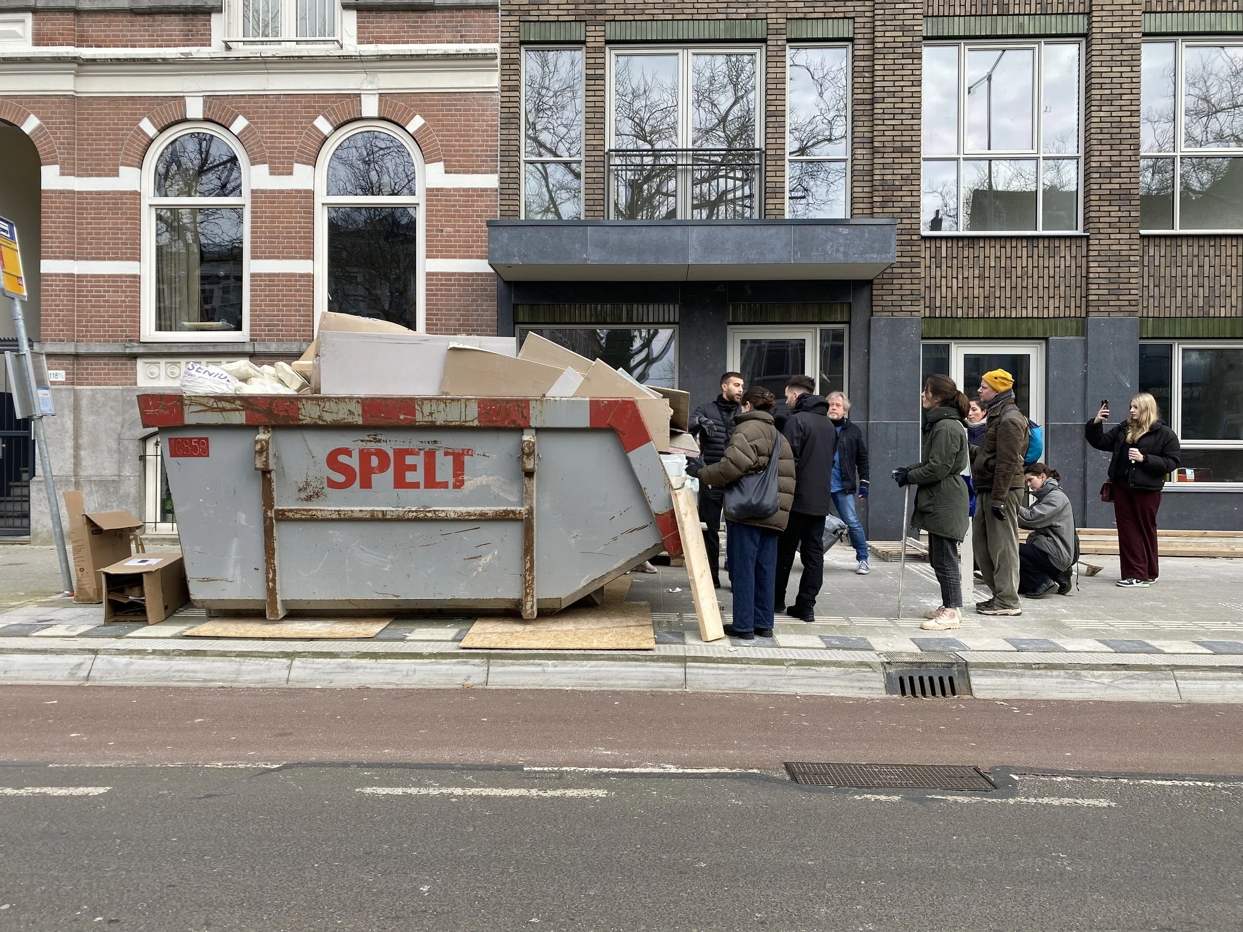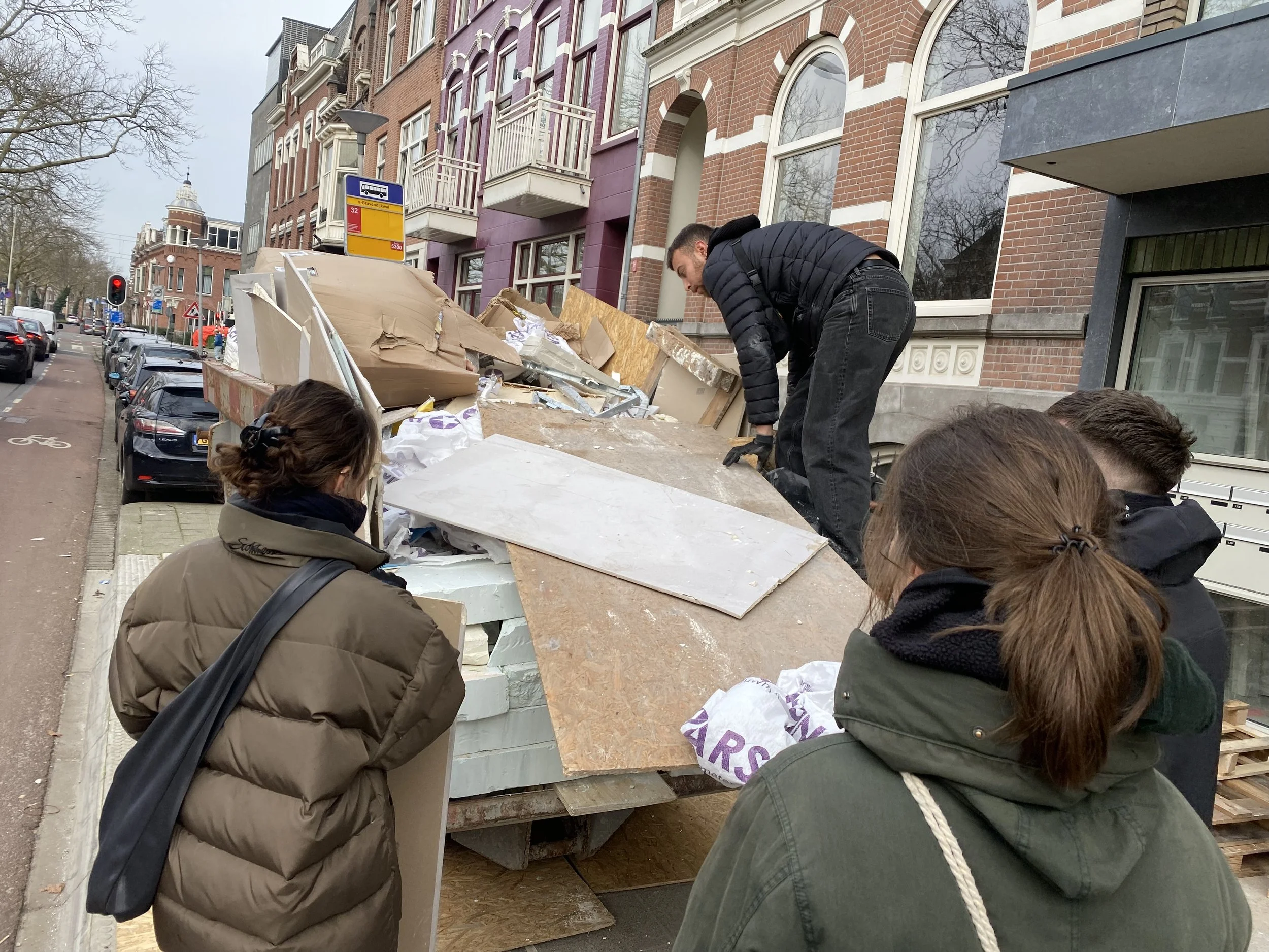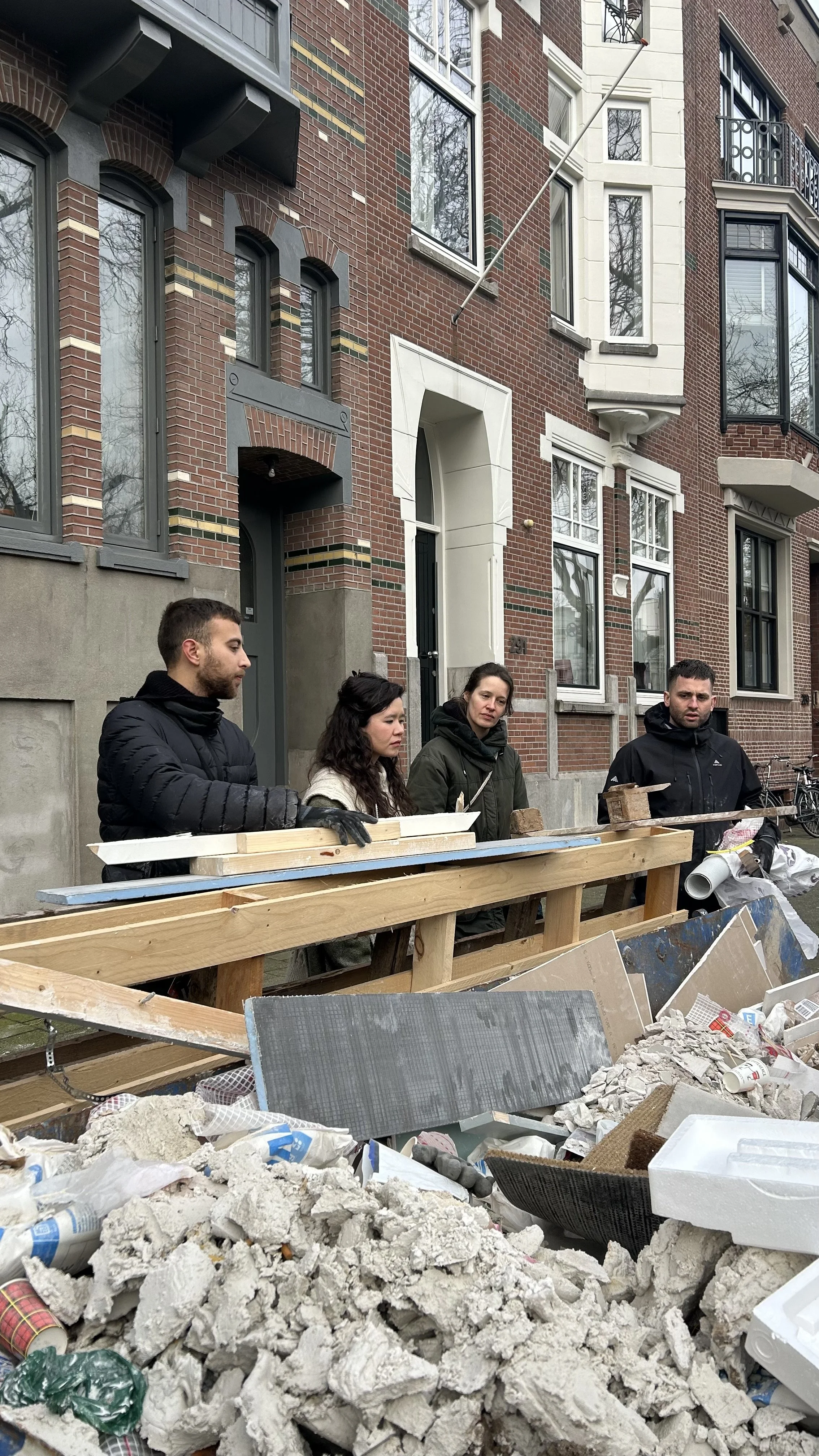 Phase 1: Scavenging - Participants, guided by Studio-Method, embarked on a scavenging mission around nearby Rotterdam streets. The city became a treasure trove of discarded materials. Along the way, we shared tips on where and how to find reusable waste, how to access dumpsters safely, and what to look for. Some participants collected materials for the next phase, while others picked out curious objects to take home. The hunt itself became a creative exercise, reframing the city as a resource.